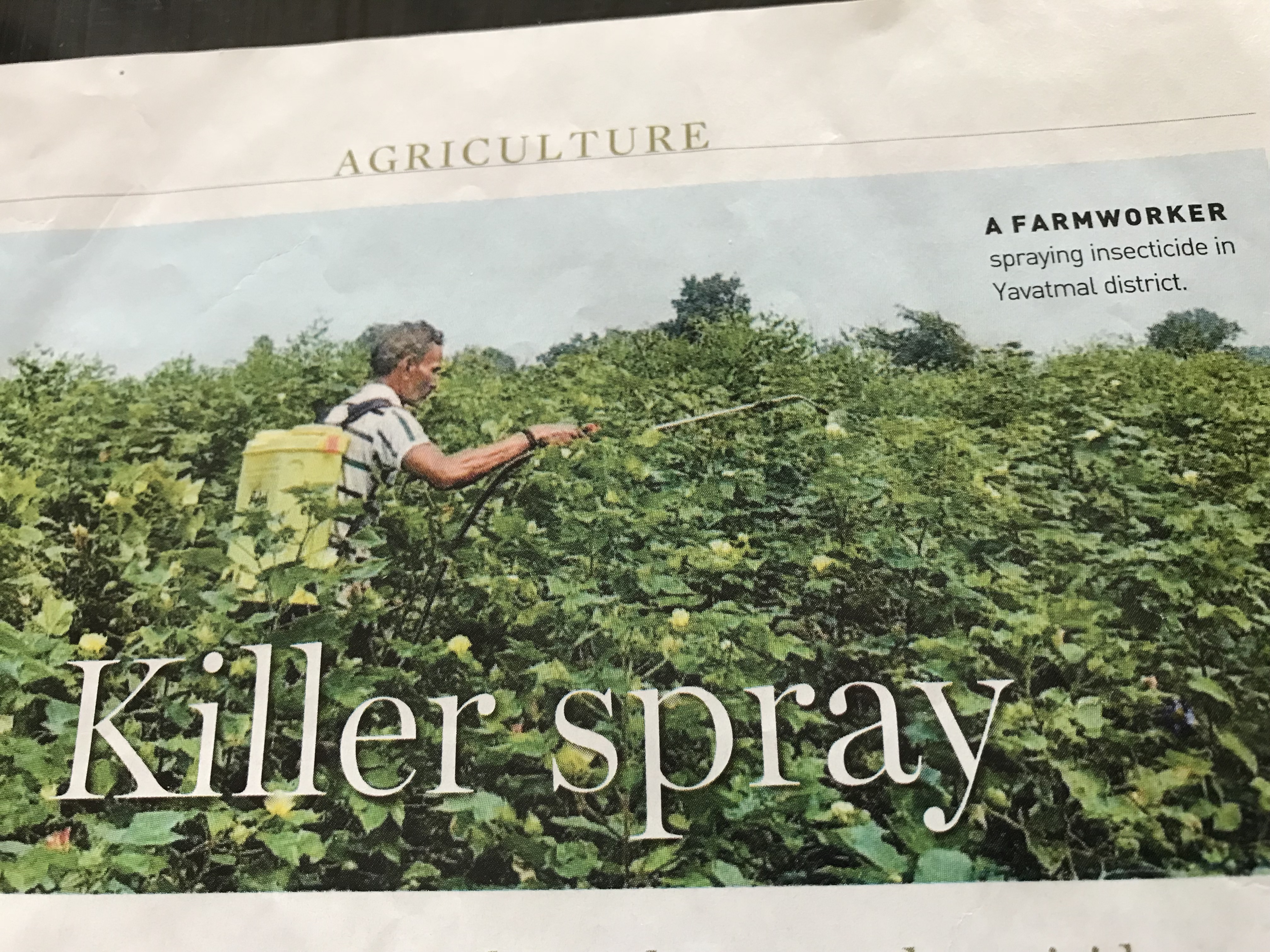 Many pesticides are applied in the form of spray and extended exposure to this spray could be toxic to humans and lead to various health hazards including death..The use of personal protective gear kits containing sturdy gloves,face mask,googles and apron can prevent such exposure and protect the health of farmers..Farmers also need counseling to prevent suicides.